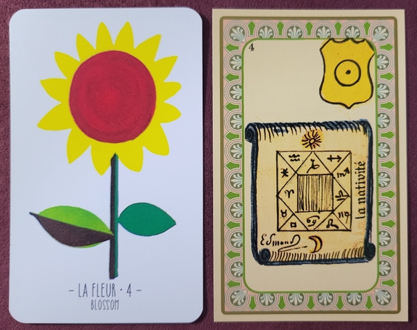– 태양 카드: 4번 꽃, 5번 상승, 6번 보상, 7번 신뢰, 8번 명예, 9번 선물, 10번 휴식