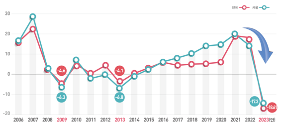 2023년 자료를 보면 공시가격은 전년 대비 18.61% 하락했다. 역대 최대 낙폭이었다.