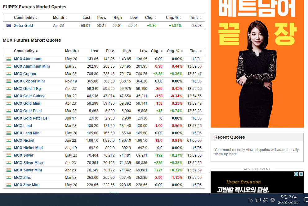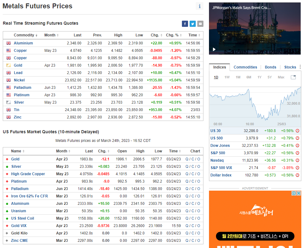 2023년 3월 24일 cme, lme, 에너지(금속), VIX, NYSE 가격 2023년 03월 25일 by issue 2023년 3월 24일 금요일 이들은 cme, lme, 에너지(금속), VIX 및 NYSE 시세입니다. '추천 관련글, 2023년 3월 6일 cme,진해군항제 일정도착 축제전야제 소개 및 안내수입 영양보충제 시장에서 주목을 받는 인기 제품은 무엇인가?무릎 부상 후 무릎 연골 MRI 촬영