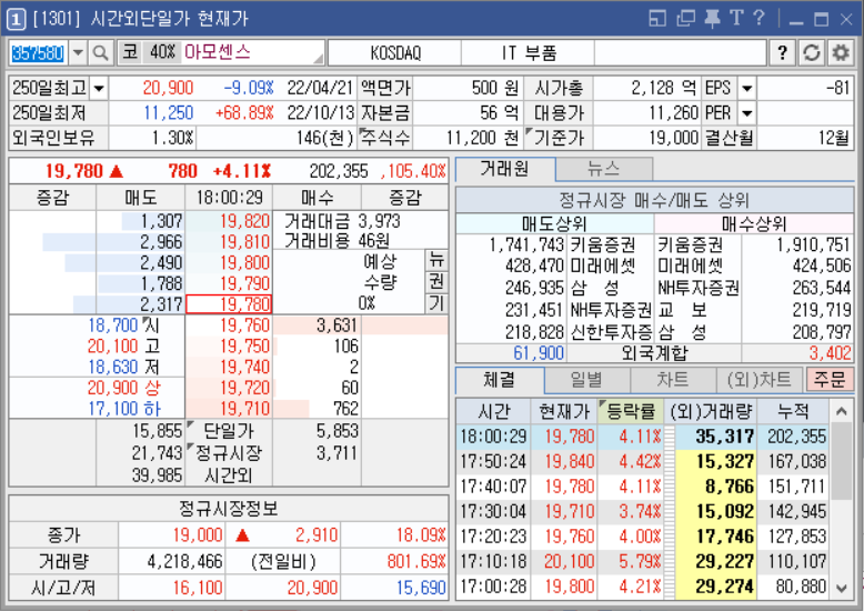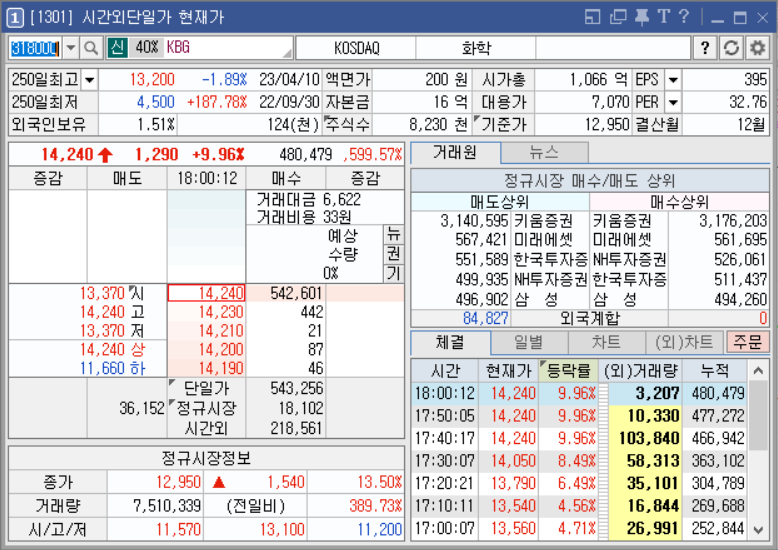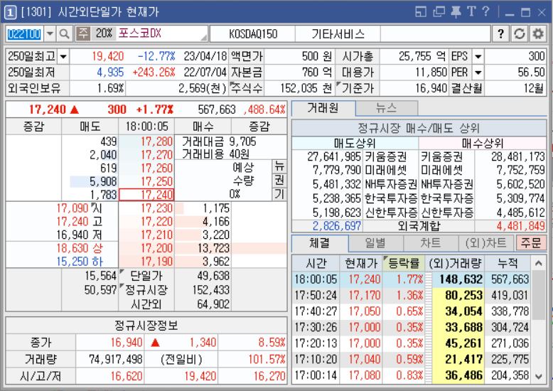 종가까지 다시 주가를 올릴 의지를 보이며 시간외 돌파.