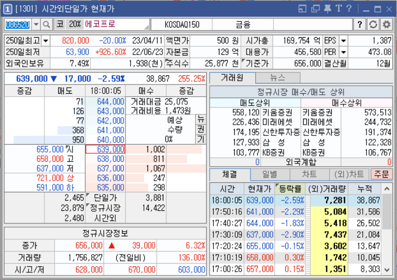 결국 에코프로 급등으로 수요와 공급을 잃고 계단식 하락