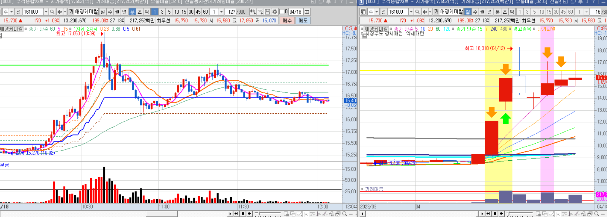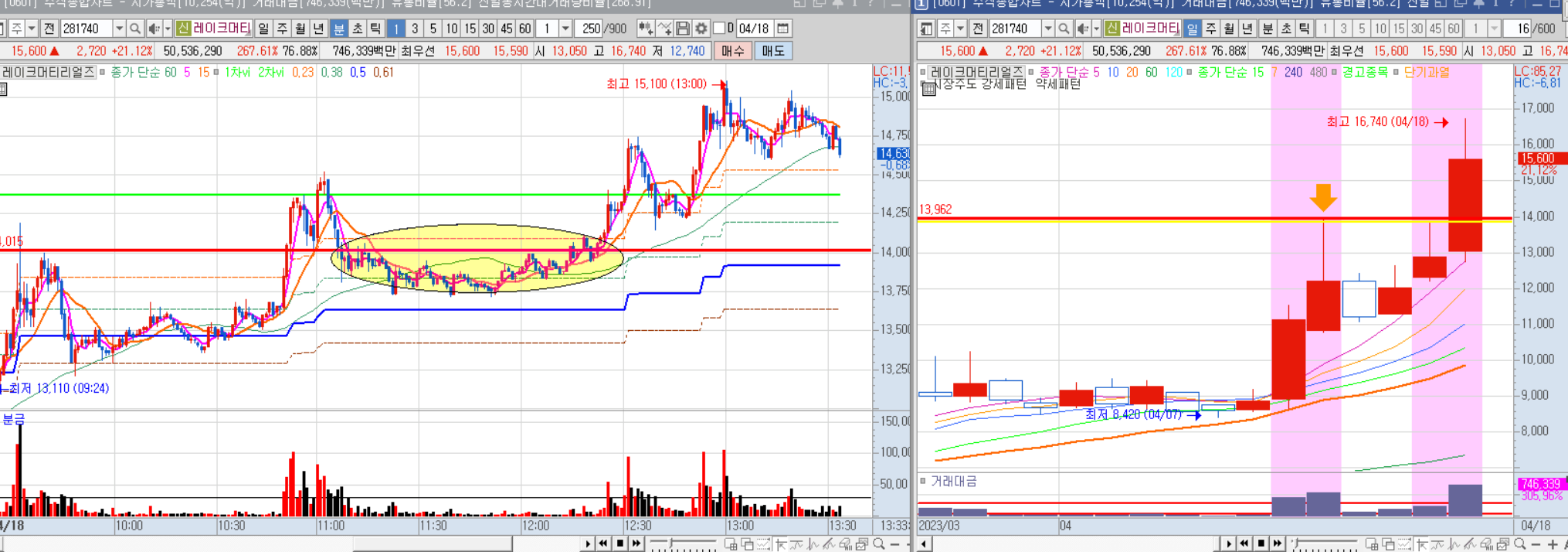 15,000원을 돌파한 뒤 시세 모멘텀이 나오며 장기전을 펼쳤다.